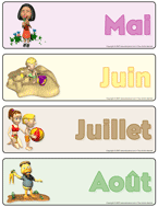 Imprimez les différents mois (ouvrir pdf les douze mois de l’année). Plastifiez et fixez-les au plancher. Mettez de la musique et quand celle-ci s’arrête, les enfants doivent s’asseoir sur un mois. (Variante de la chaise musicale).