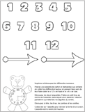 (ouvrir pdf bricolage horloge) Imprimez et découpez les différents morceaux. Prenez une assiette de carton et demandez aux enfants de coller les chiffres tout autour en prenant bien soin de leur faire coller le « 12 » en haut et le « 6 » en bas.