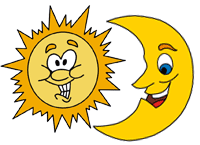 (Ouvrir lune et soleil) - Imprimez et plastifiez. Assoyez-vous en cercle avec les enfants. Quand vous leur montrez le soleil, tout le monde se lève, danse et bouge, et quand vous leur montrez la lune, tout le monde se couche par terre et fait semblant de dormir. Alternez le soleil et la lune, question de vous dégourdir un peu.