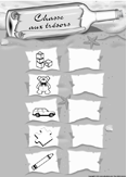 Faites plusieurs copies de la liste de chasse au trésor.(Ouvrir jeu chasse au trésor). Assurez-vous que chaque enfant reconnaît les illustrations sur la liste de chasse au trésor. Rassemblez les enfants par équipe de deux. Chaque équipe a une copie de la liste et un sac à trésors. La première équipe à revenir avec toutes les illustrations gagne la partie.