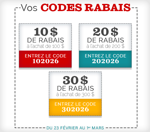 20 $ DE RABAIS AVEC ACHAT DE 200 $