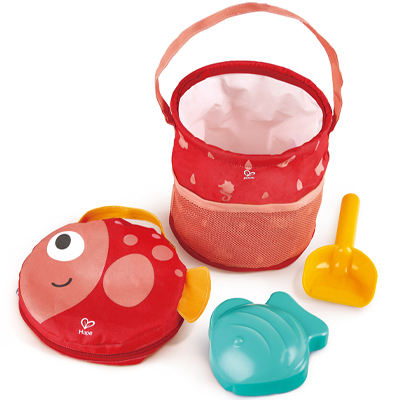 Be ready for summer fun with this adorable beach play set! The easy-to-carry canvas bag with a fish design includes a fold-out bucket, a small shovel, and a fish-shaped sand mold. Perfect for outdoor play, helping children explore sand and develop their creativity during playtime.