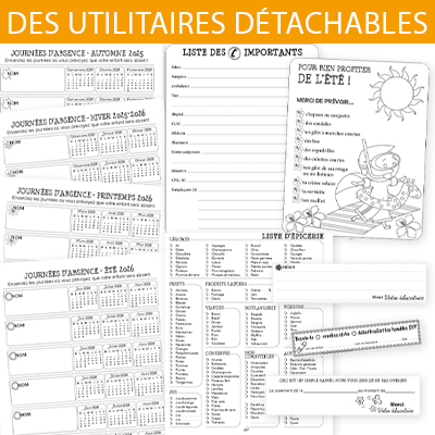 • Pour chaque saison; un calendrier à afficher pour planifier les journées d’absence des enfants et des affiches mémo pour le rappel des vêtements saisonniers.