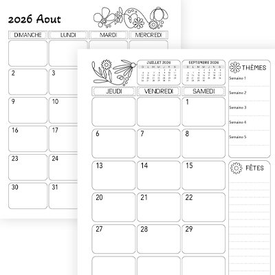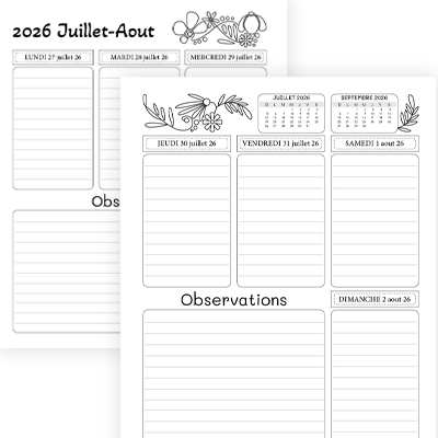 • Des divisions simples et bien espacées pour chaque mois, chaque jour et chaque activités.
