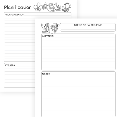 • Section complémentaire pour votre programmation d’activités, pour noter vos ateliers, votre matériel et vos notes pour chaque semaine.