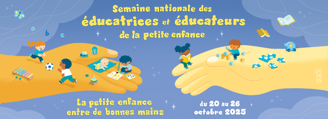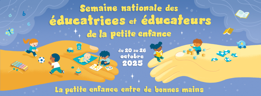 L'équipe d'Educatout désire célébrer avec vous la quatrième édition de la Semaine nationale des éducatrices et éducateurs de la petite enfance du 20 au 26 octobre 2025.